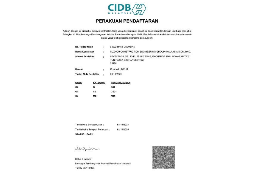 苏州建工取得马来西亚施工最高品级资质
