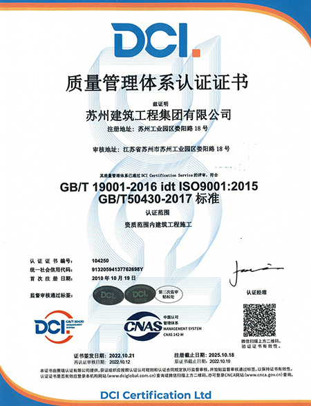 • 质量治理系统认证证书