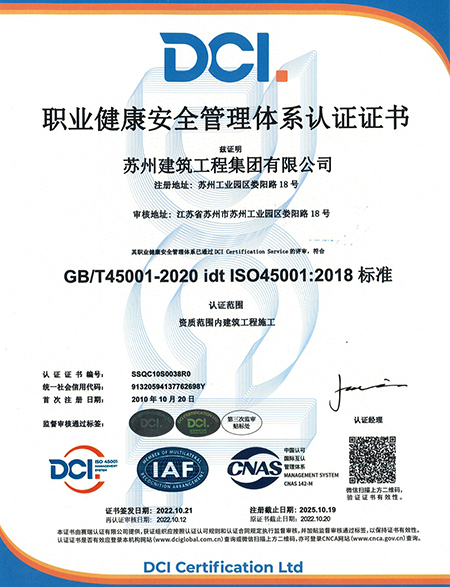 • 职业康健清静治理系统认证证书